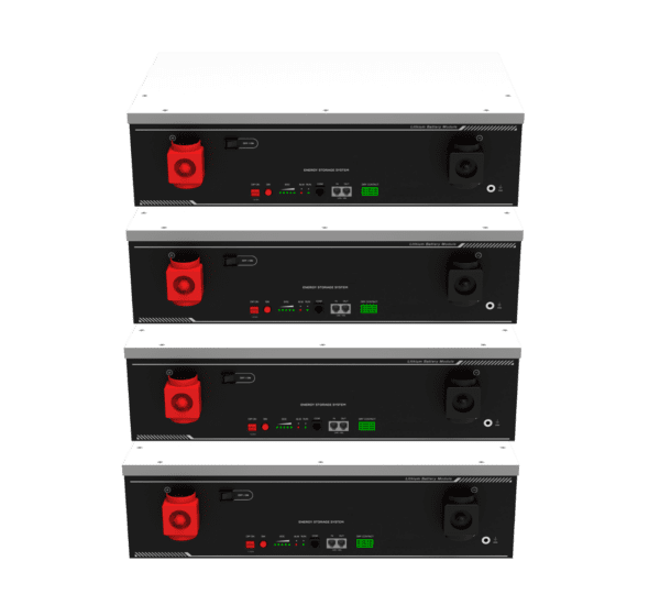Het systeem wordt opgebouwd met 4x 5,12kWh units en gekoppeld aan elkaar om de 20,48kWh opslag te bereiken.